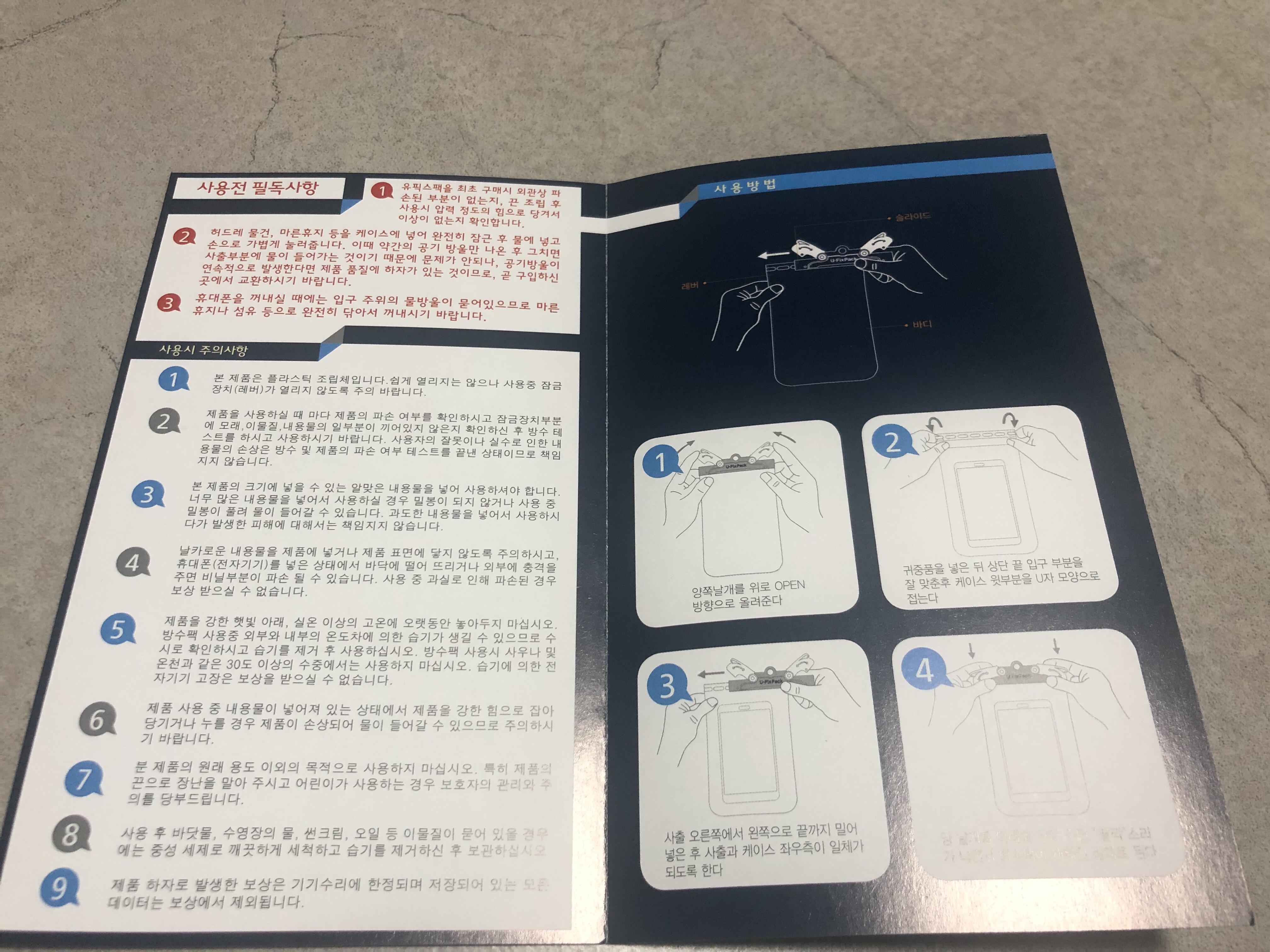 ▲ 이렇게 사용하는 방법을 자세하게 그림으로 설명되어 있는 유픽스 방수팩입니다.
