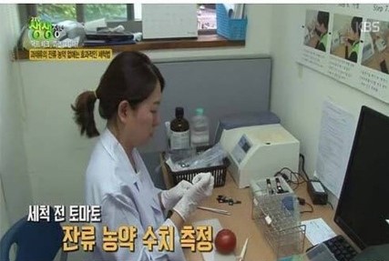 위에 생생정보통에서 반영한 잔류 농약 수치를 측정하여 여러가지 세척 방법을 시행 한 뒤 남은 잔류농약 수치를 측정하는 방식으로 하여 실험에 임했는데요.
