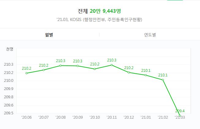 사실 대기업이 입주하는 상황에서 인구수는 1가족단위당 2명또는 3,4명으로 추정할 수 있는데 오히려 대기업이 유입되는 상황에서 인구수가 줄어들고 있다는 점입니다.