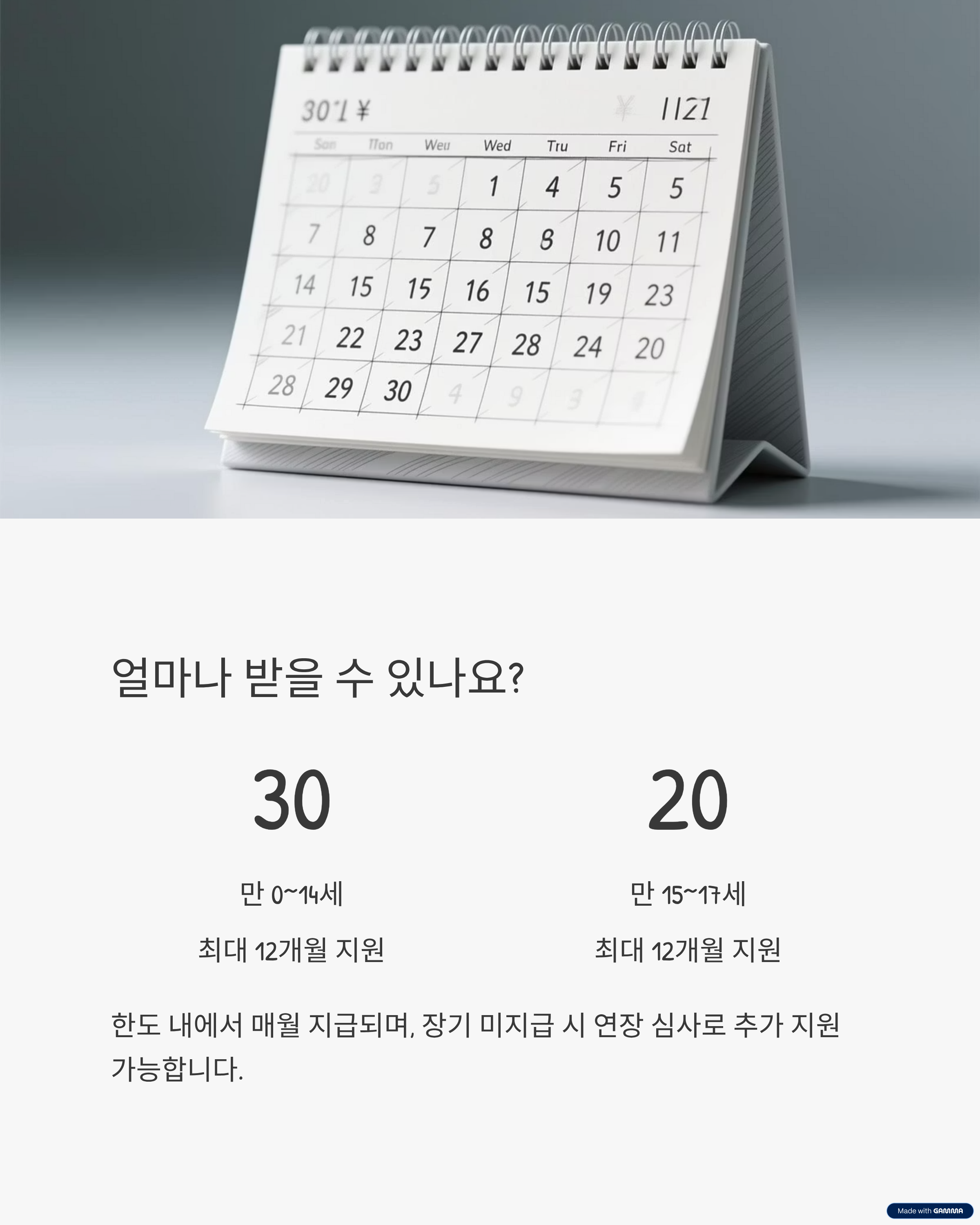 | 만 0~14세 | 최대 30만원 | 최대 12개월 |