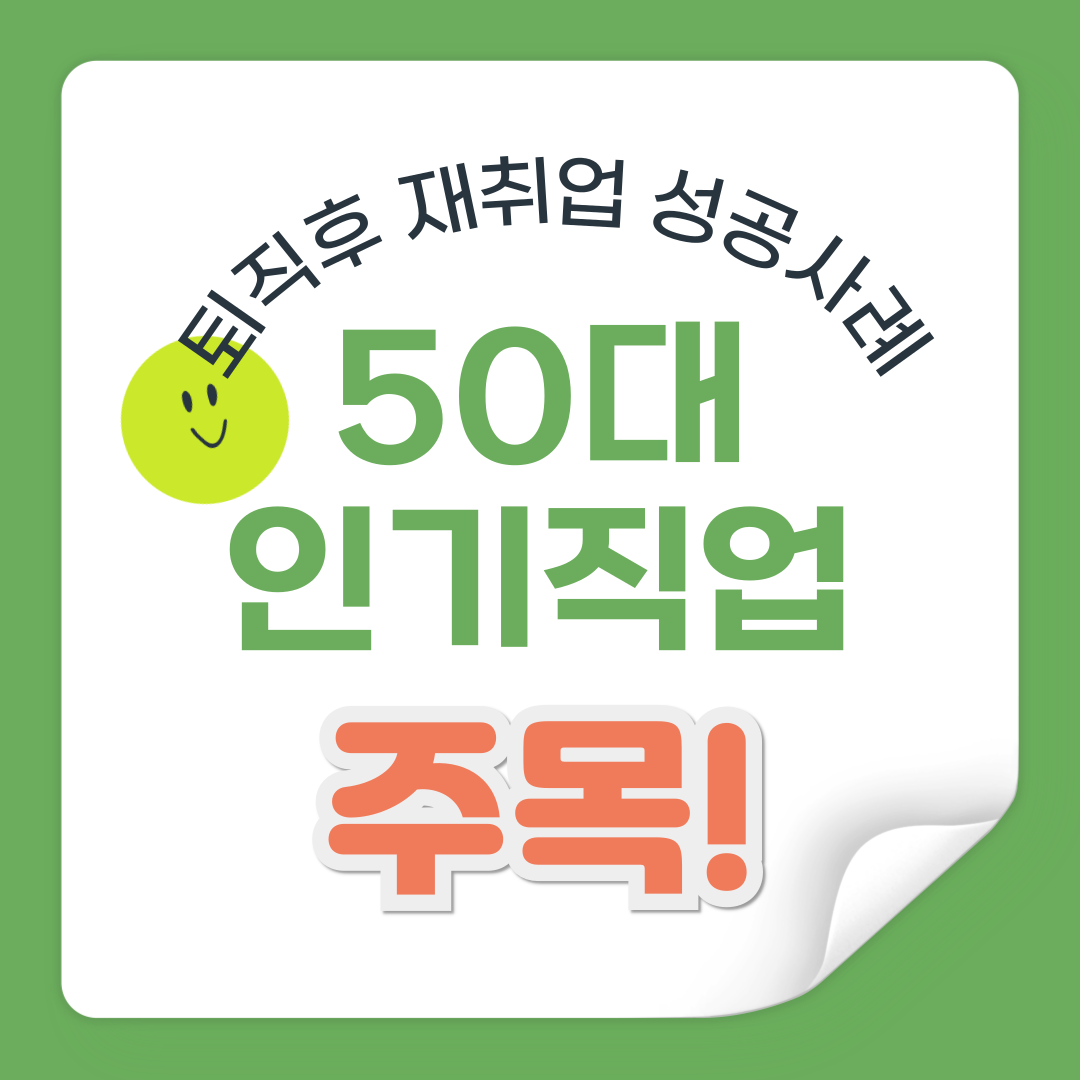 50대재취업, 퇴직자성공사례, 인기직업, 중장년취업, 재취업아이디어